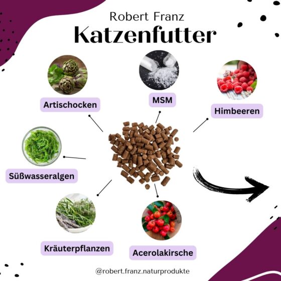 Hühnertrockenfleisch 49 %, Vollwertreis, Maiskeime, TrockenFISCH, Gelatine, Rote Rüben, Leinsamen, Rapsöl, NUSSöl, Karotten, Linsen, Seealgen, Kürbiskerne, Süßwasseralgen, Kräuterpflanzen, Acerolakirsche, Traubenkernextrakt (74 % polyphenolhaltiger Extrakt mit 40 % OPC) 0,1 %, MSM, Artischocken, Himbeeren, Mango, Alfalfa, Taigawurzel, Tagetesblüten, Jiaogulan