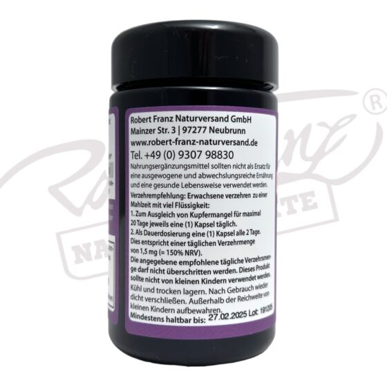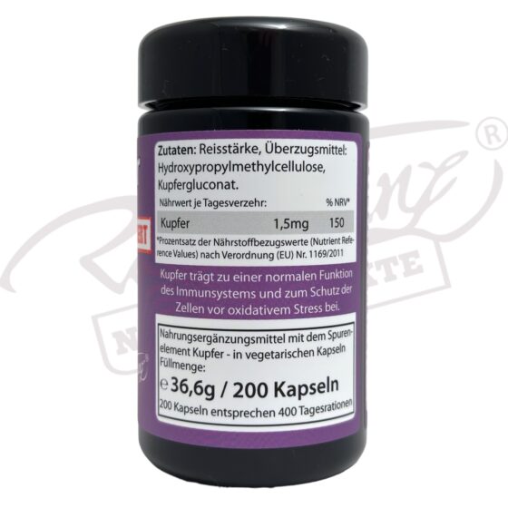 Inhaltsstoffe: Jede Kapsel enthält 1,5mg Kupfer (= 150% NRV*).