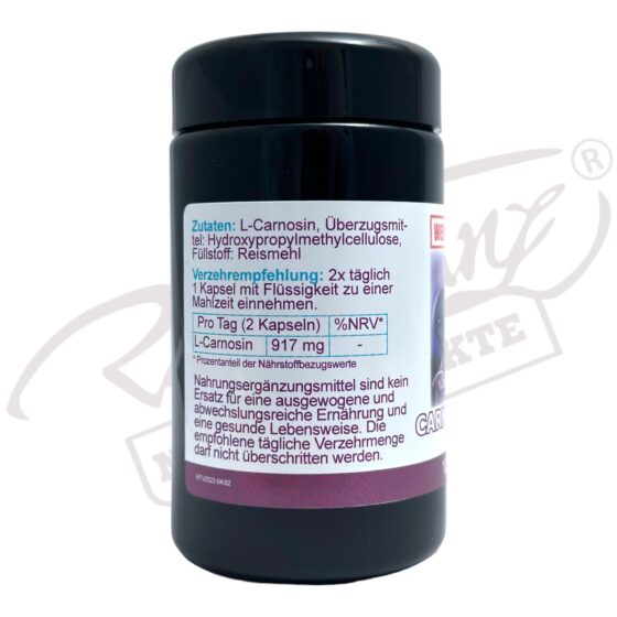 Inhaltsstoffe: 2 Kapseln enthalten 917 mg L-Carnosin (= 0% NRV*)