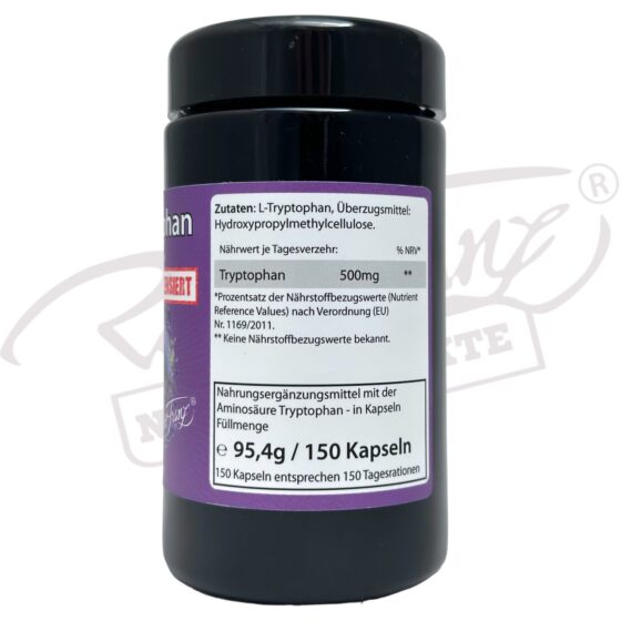 Inhaltsstoffe: Pro Kapsel sind 500mg Tryptophan enthalten.