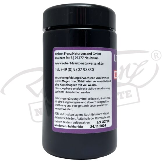 Wichtiger Hinweis: Nahrungsergänzungsmittel sind kein Ersatz für eine ausgewogene und abwechslungsreiche Ernährung und eine gesunde Lebensweise. Die angegebene empfohlene tägliche Verzehrmenge darf nicht überschritten werden. Außerhalb der Reichweite von Kindern aufbewahren. Trocken und kühl lagern. Nach Gebrauch wieder dicht verschließen.