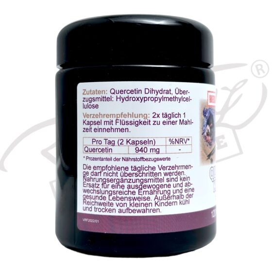 Inhaltsstoffe: 2 Kapseln enthalten 940 mg Quercetin (= 0% NRV*).