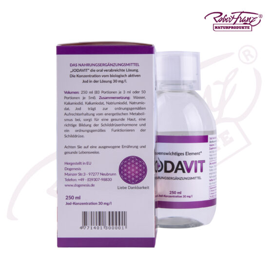 JODAVIT ist eine Verbindung von Jod und „artesisches Wasser“. (Unter dem Begriff „artesisches Wasser“ versteht man unterirdische Gewässer, die unter hydrostatischem Druck stehen und deshalb als frei ausfließender Brunnen hervorgerufen werden können.) „Jodavit“ die oral verabreichte Lösung.