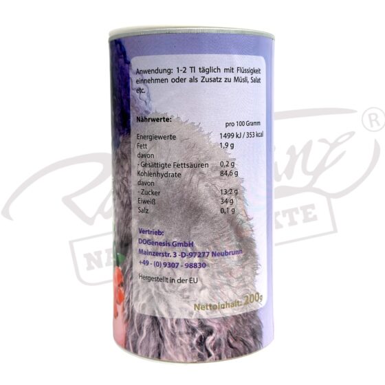 Einnahme: 1 – 2 TL täglich mit Flüssigkeit einnehmen oder als Zusatz zu Müsli, Salat etc.